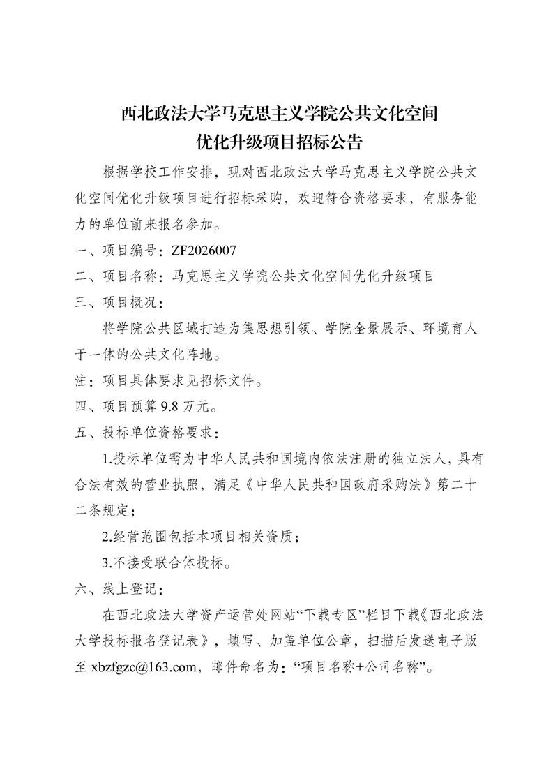 西北政法大学马克思主义学院公共文化空间优化升级项目招标公告